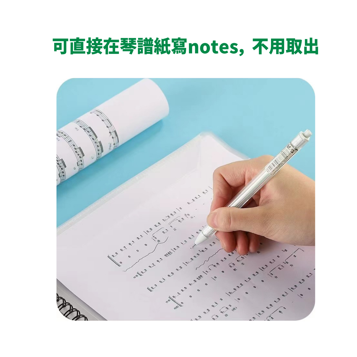 - 可直接在琴譜紙寫notes,不用取出