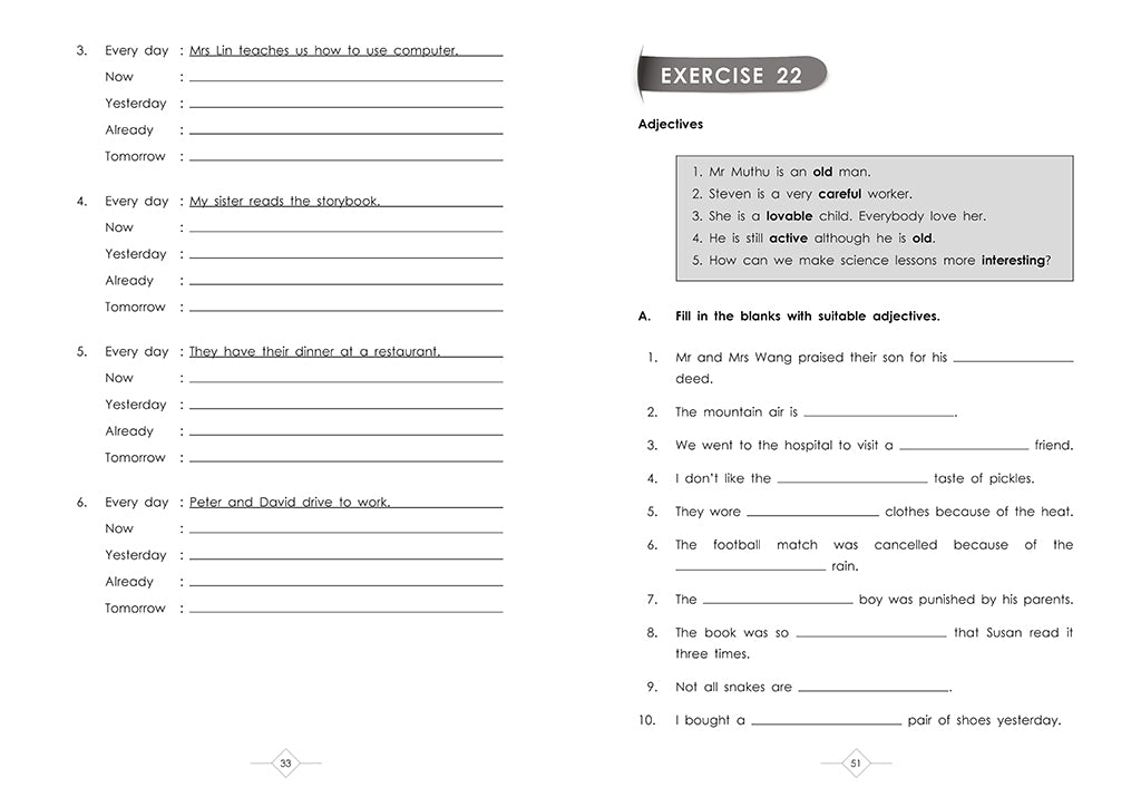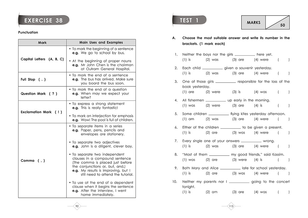 Most of the exercises in this series begin with carefully selected examples on the language item taught. These will then be followed by a series of practice exercises to help students gain confidence in the usage of that particular language item. Thus it is hoped that at the end of the series, students will gain sufficient mastery in all the language structures taught.