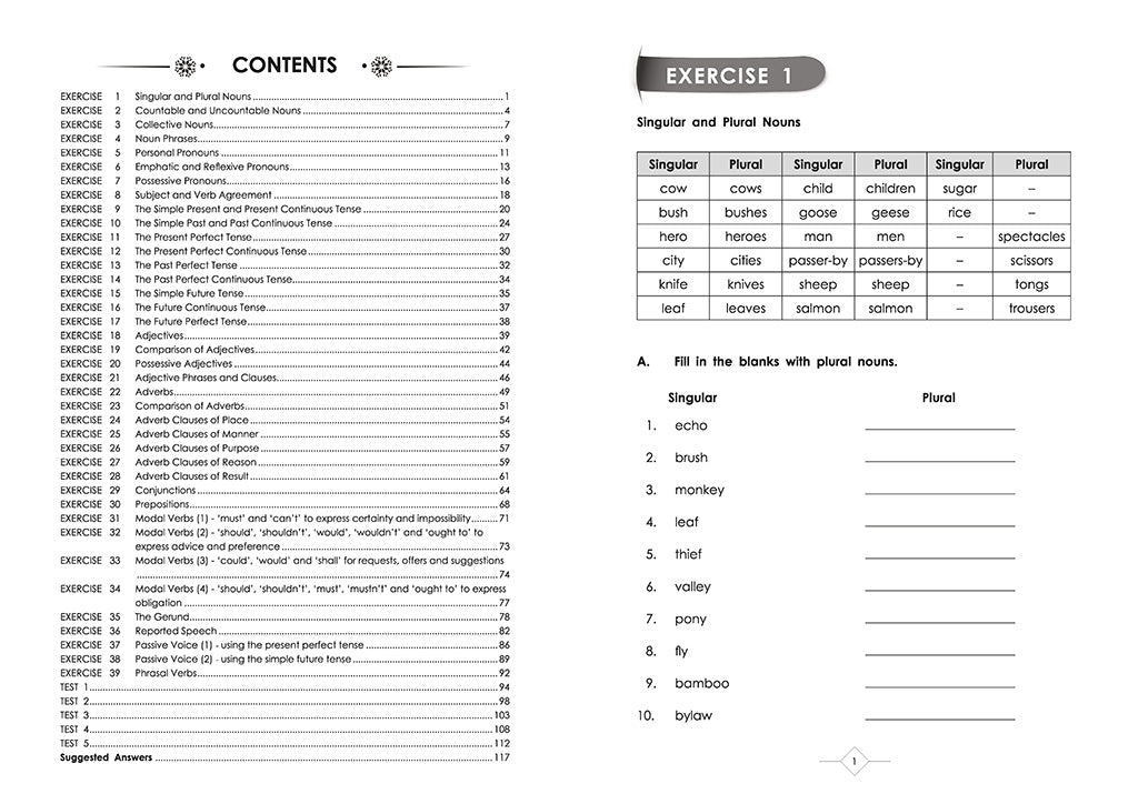Most of the exercises in this series begin with carefully selected examples on the language item taught. These will then be followed by a series of practice exercises to help students gain confidence in the usage of that particular language item. Thus it is hoped that at the end of the series, students will gain sufficient mastery in all the language structures taught.